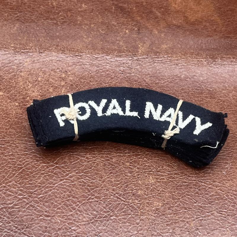 Royal Navy Shoulder Title WW2 White embroidery on Navy Blue, paste back unused good clean examples taken from factory tied bundle, will split a pair if needed